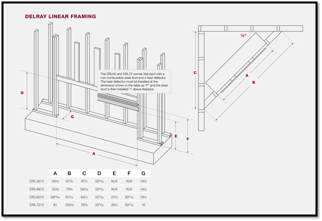 Framing depth: The DelRay 36, 48, and 60 fit easily into a 14¼” framing depth
