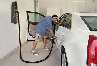 No need to deal with a short electrical cord or store a bulky portable vacuum. Vroom Garage Vac includes: vacuum unit, dashboard dusting brush, crevice tool, 24" flexible crevice tool, telescoping wand, bare floor brush, wall-mounted wand holder, 2-piece uphostery tool and 8' to 40' expandable stretch hose.
